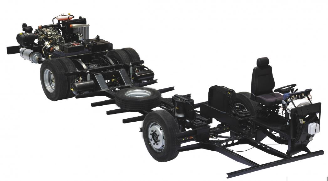 O chassi de ônibus AGRALE MT 13.0 LE permite a montagem de carrocerias de até 10 metros de comprimento e é projetado para um peso bruto total de 13 toneladas.