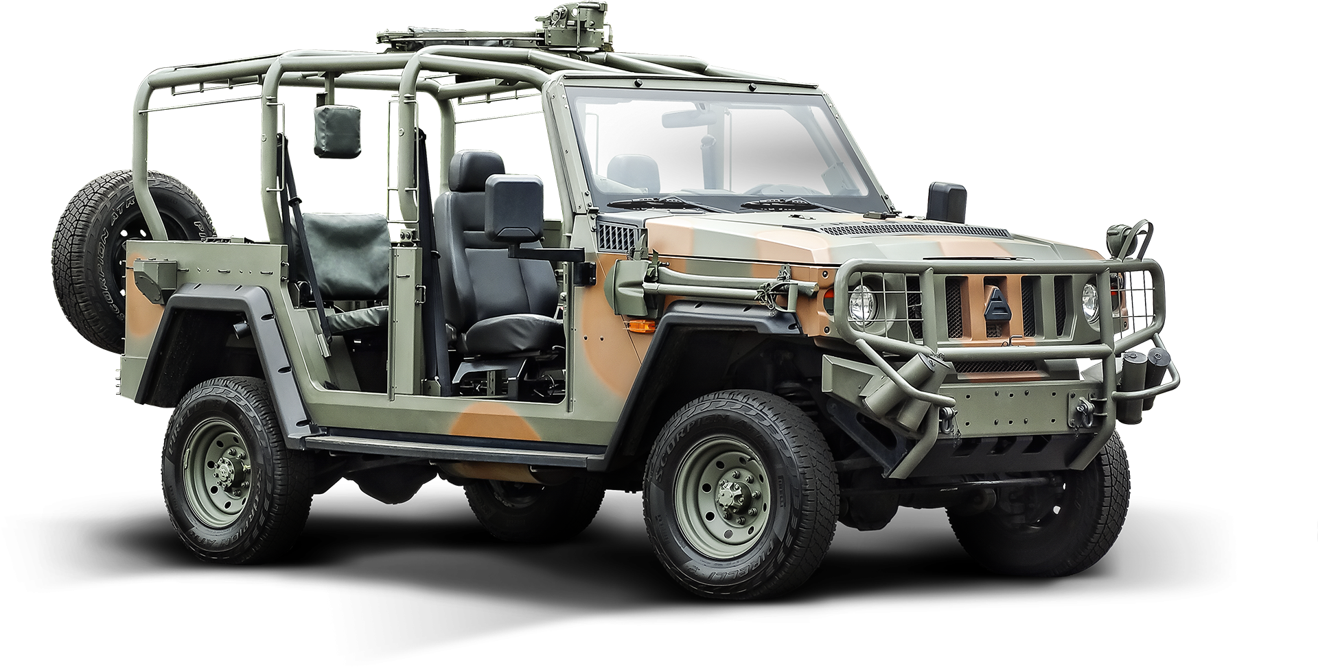 Viatura de reconhecimento com opção de reparo para metralhadora com 360º de giro.