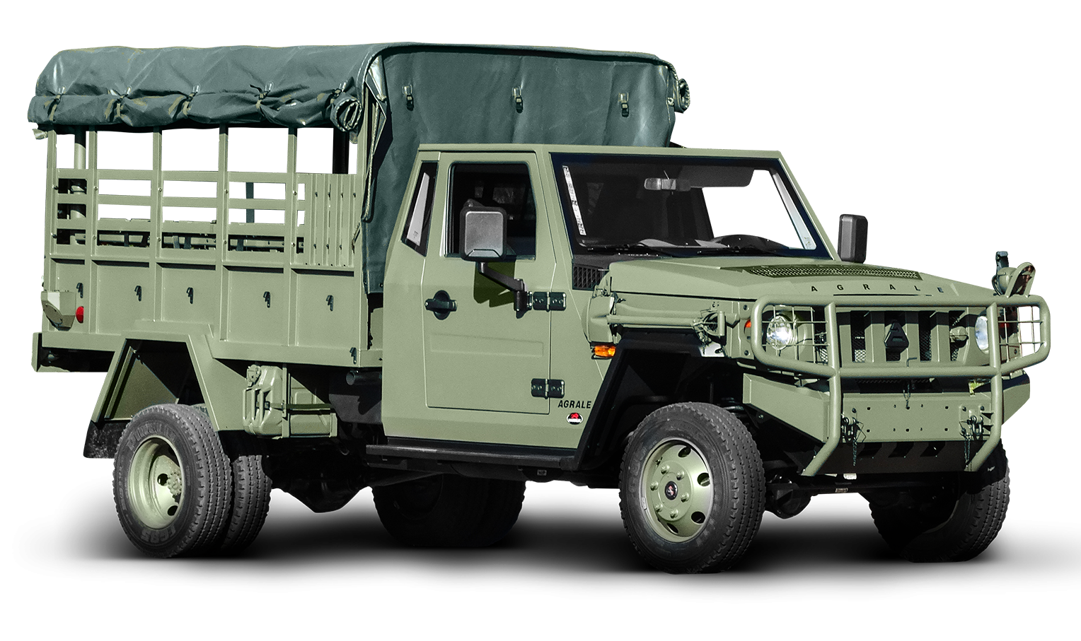 Viatura para transporte de tripulantes ou carga de 1500kg, carroceria metálica, e cabine com teto rígido.